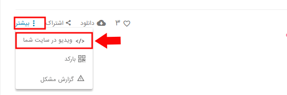 به ویدیویی که در آپارات دارید در در قسمت پایین به ادرس بیشتر > ویدیو در سایت شما بروید. مانند تصویر: