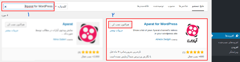 اما آپارات یک افزونه به نام Aparat for WordPress دارد که با آن افزونه میتوانیم در صفحه سایت خودمون یا همون پست های خودمون ویدیو بگذاریم برای نصب افزونه آپارات به مخزن وردپرس مراجعه میکنیم.