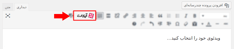حالا میریم سراغ افزودن ویدیو های آپارات. این افزونه امکان قرار دادن ویدیو در پست رو هم به ما میده و امکان گذاشتن ویدیو به صفحه سایت رو هم از طریق ابزارک ها به ما میده به یکی از نوشته های خودمون میریم و مانند تصویر زیر میبینیم که دکمه جدیدی ایجاد شده به نام اپارات