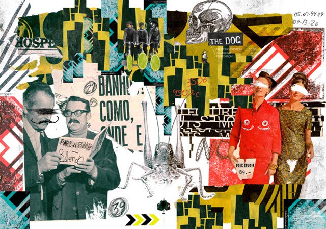 تکنیکی برای خلق تصویر که با چسباندن کاغذ، پارچه، عکس یا سایر چیزها به شیوه ای غیرمعمول و شگفت انگیز در کنار هم انجام می شود. کلاژ توسط ژرژ براک و پابلو پیکاسو در آغاز سده ی بیستم رواج پیدا کرد. تصویر این صفحه توسط Why Not Associates طراحی شده که کلاژی از متن و بلوک های رنگ را به نمایش می گذارد.