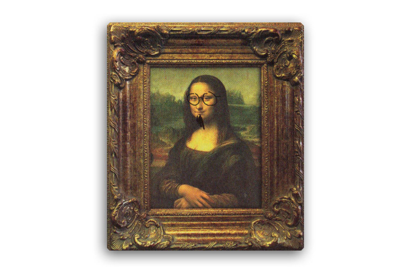 تصویر این صفحه، برداشتی از LHOOQ اثر مارسل دوشان است. این اثرنسخه ی بدلی از مونالیزا اثر لئوناردو داوینچی است که تصویر و شعار مستهجنی بر آن نقش بسته است؛ عملی که به شکلی موجز، مقدسات جامعه را توسط دادائیست ها مردود می شمارد. مارسل دوشان، هانس آرپ و آندره بتن از دادائیست های پیشرو محسوب می شوند.